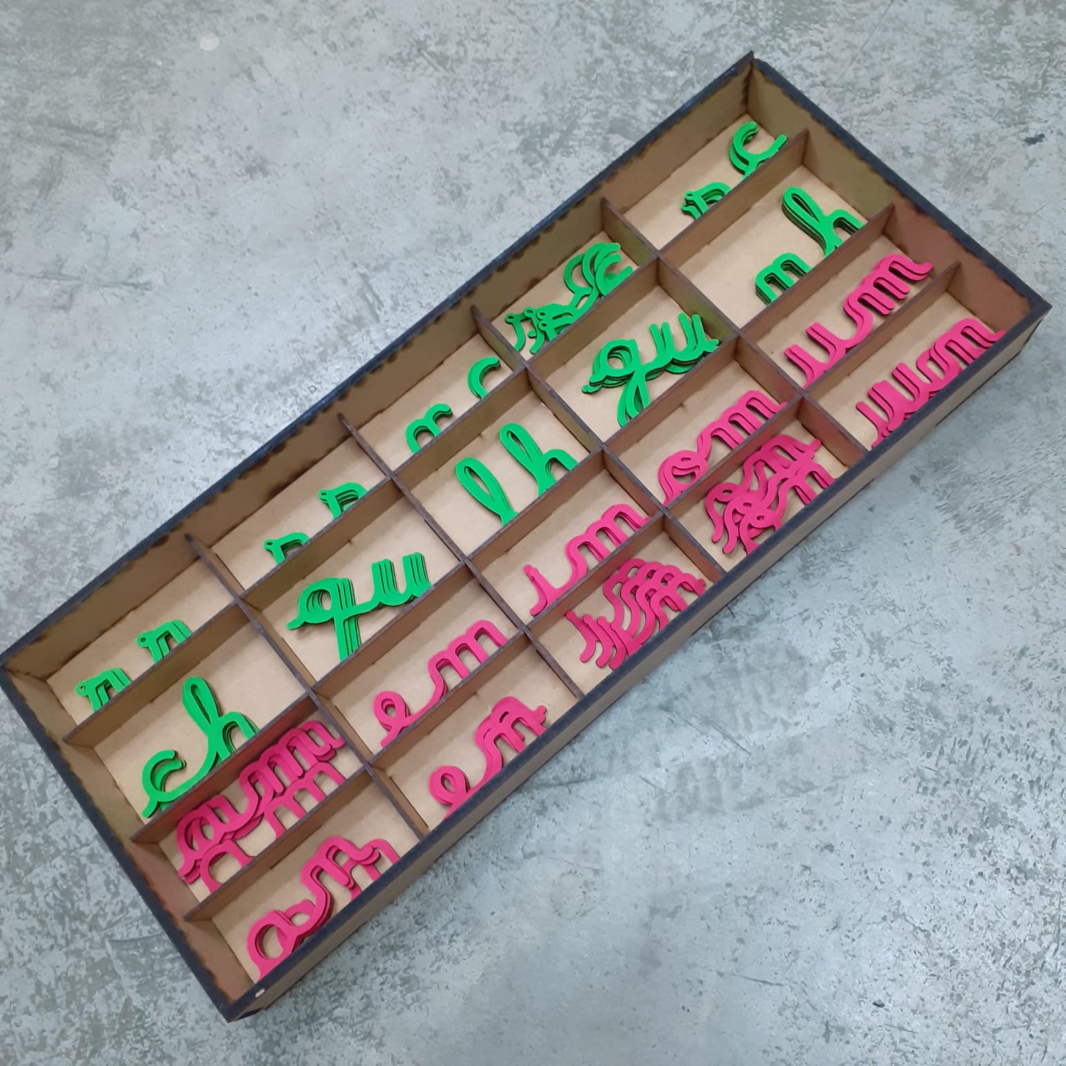 Os nossos dígrafos são feitos com corte a laser, que garante uma precisão no formato e encaixe das letras.